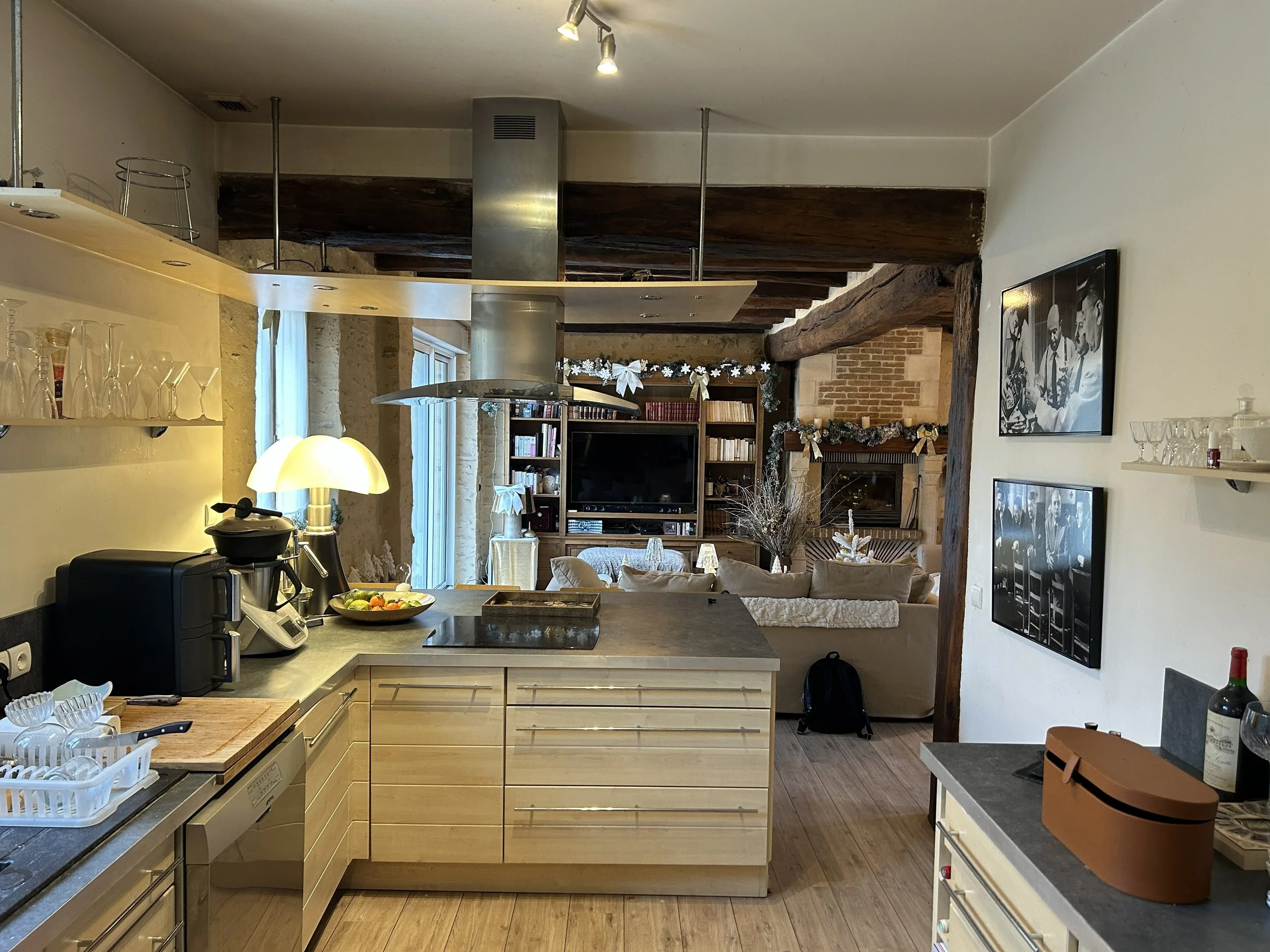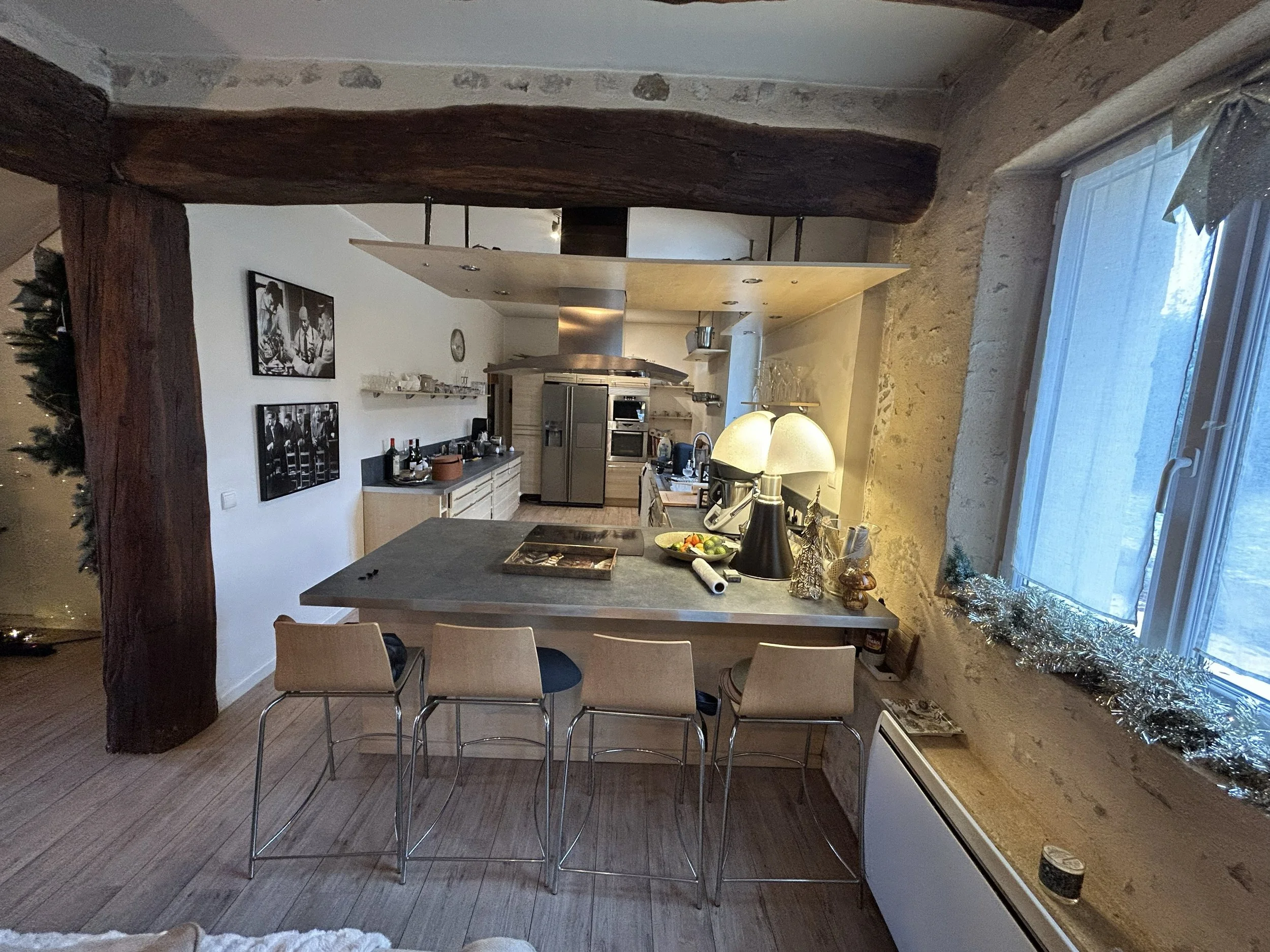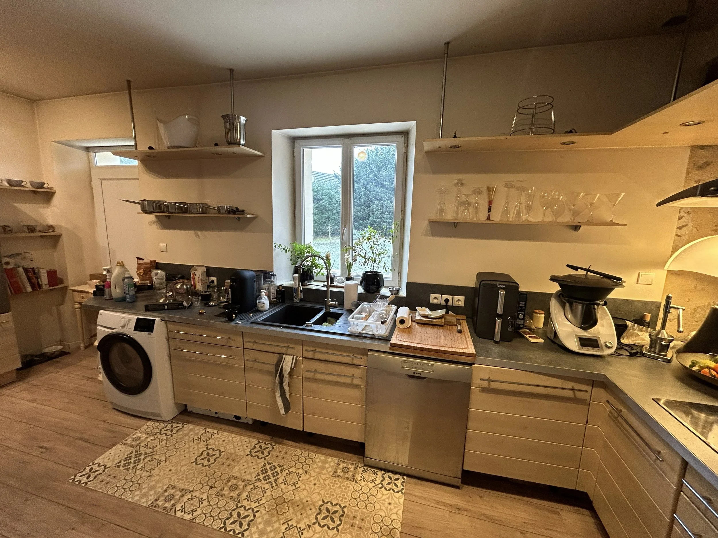 Cette rénovation transforme la cuisine en un espace moderne et fonctionnel. Les portes à galandage apportent un vrai gain de place et une circulation fluide, tout en offrant la possibilité de moduler l’ouverture de la pièce.